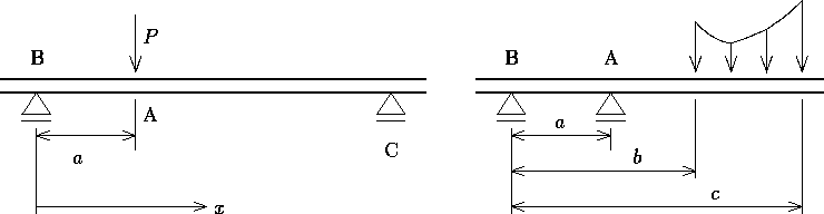 左の支点から a 離れた点 A に集中荷重 P が作用した時の