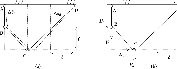 - 下図 (a) に示す不安定トラスが右方向にわずかにスイングした.