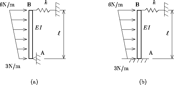 次の図 (a), (b) のバネの伸縮量を求めよ.